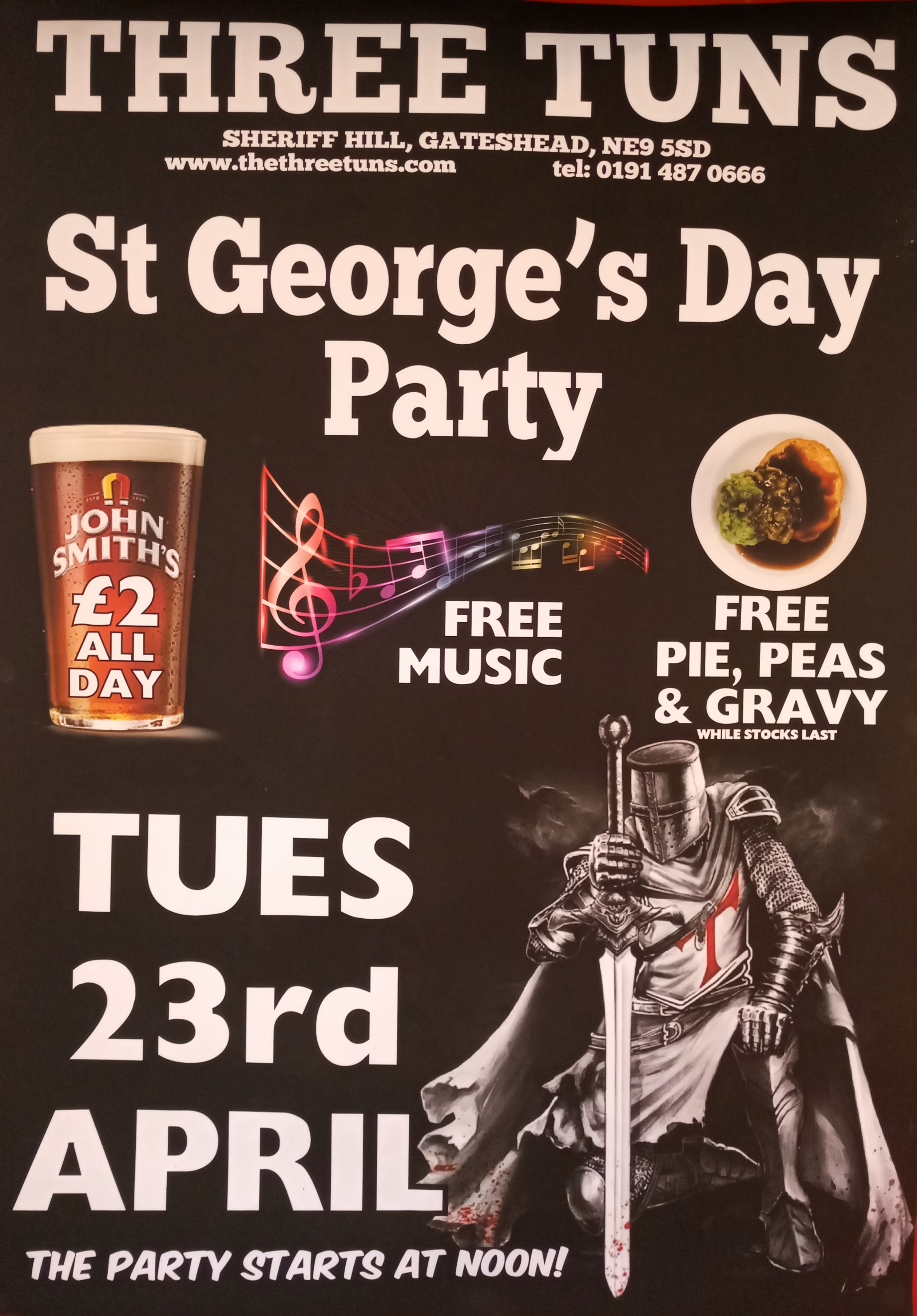 We’ve our annual St George’s Day party, next Tuesday, the 23rd.